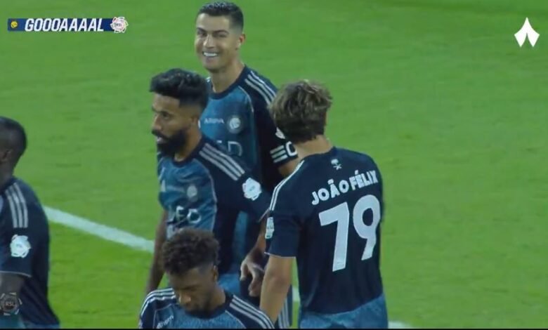 مشهد رونالدو العجيب والغريب مع زميله جواو فيليكس وردة فعل ونظرة عجيبة من كريستيانو